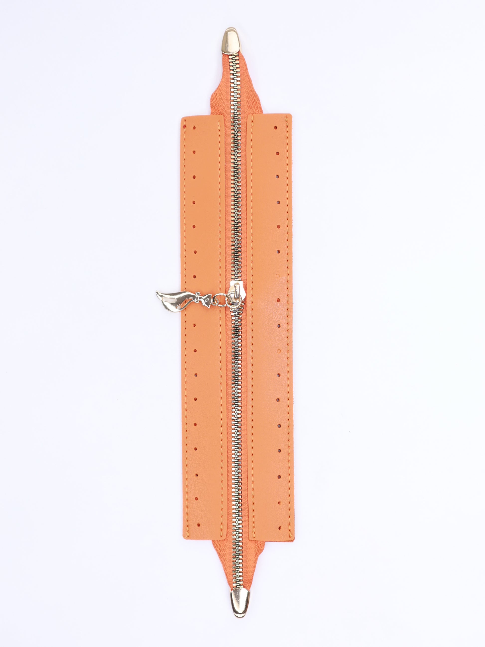 Çift taraflı, suni derili çanta fermuarı. 25Cm uzunluğunda çift taraf kapamalı gold fermuarlı.